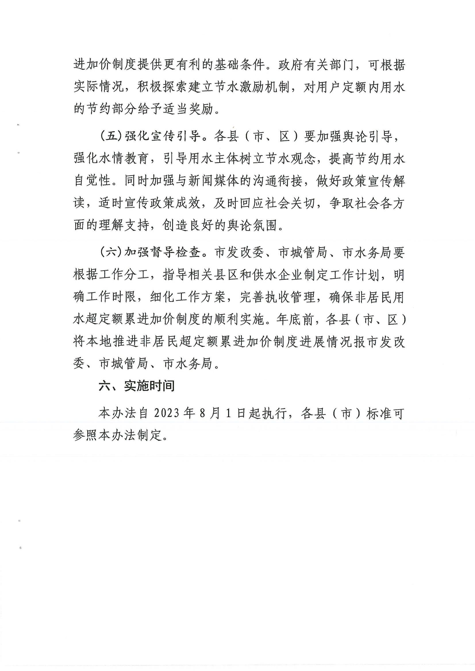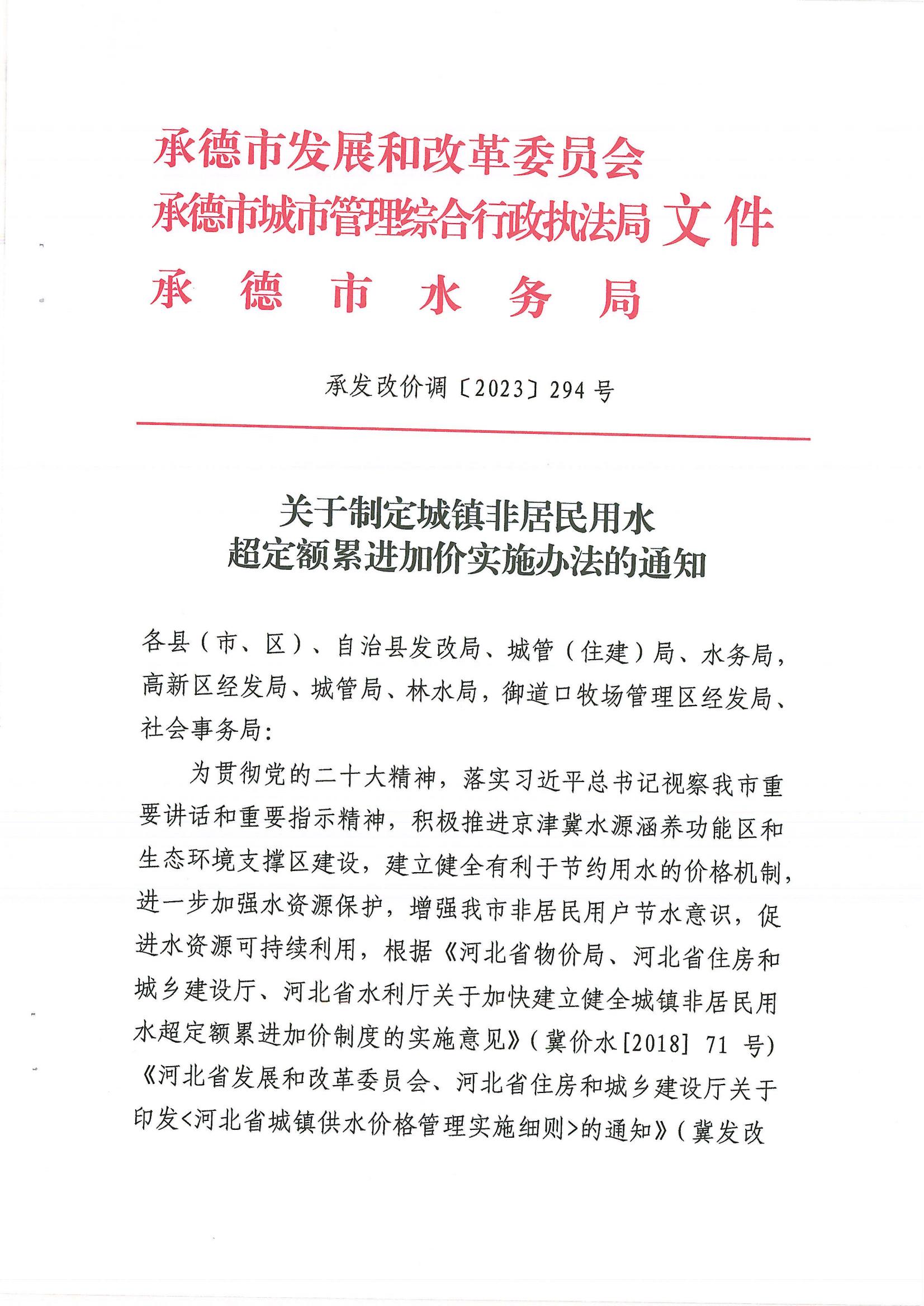 承德市發(fā)展和改革委員會等三部門關于制定城鎮(zhèn)非居民用水超定額累進加價實施辦法的通知 承發(fā)改價調(diào)〔2023〕294號