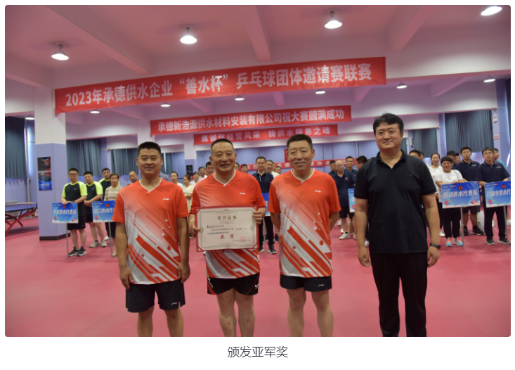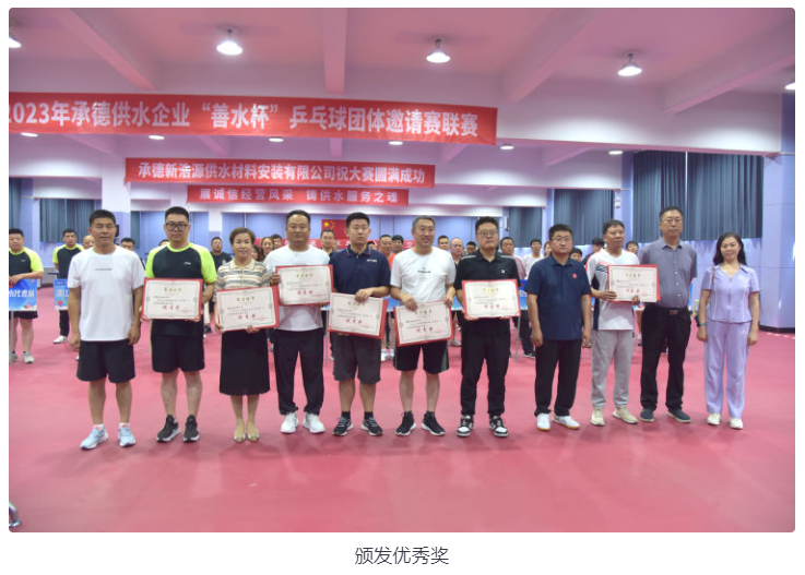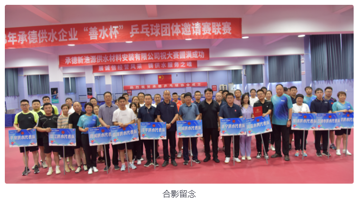 為進(jìn)一步豐富供水企業(yè)文化生活,營造百花齊放的供水文化氛圍,加強(qiáng)職工間的相互交流,提高供水隊(duì)伍的競技水平和綜合素質(zhì),展現(xiàn)員工蓬勃向上的精神風(fēng)貌,6月16日上午,由河北省城鎮(zhèn)供排水協(xié)會(huì)承德供水工作站(承德城鎮(zhèn)供排水協(xié)會(huì)承德供水委)主辦,承德市供水集團(tuán)有限公司承辦,各市、區(qū)、縣供水企業(yè)共同參與的2023年承德供水企業(yè)首屆“善水杯”乒乓球團(tuán)體邀請賽聯(lián)賽在承德市奧力體育場乒乓球館隆重舉辦。來自承德市、區(qū)、縣的供水企業(yè)11個(gè)代表隊(duì),共50多名運(yùn)動(dòng)員參賽。